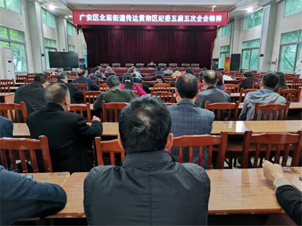 四川新闻网广安4月22日讯(王忠报 文/图)4月21日上午,广安区北辰街道召开职工大会,及时传达学习广安区第五届纪律检查委员会第五次全体会议精神,街道机关干部职工、社区书记、主任、纪工委委员、廉勤监督员共计60余人参加了会议。