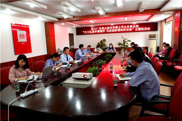 四川新闻网广安5月1日讯(廖小兵 刘刚 文/图)4月30日,广安爱众水务事业部工会举办“大力弘扬劳模精神 风劲扬帆唱响劳动美”主题座谈会,庆祝“五一”国际劳动节,激励和鼓舞事业部广大职工充分发挥主力军作用,为公司转型发展、高质量发展以及响应公司创新创效号召,团结拼搏、奋发努力,不断取得新的业绩。水务事业部劳模代表、新进员工、工会委员、各部门职工代表等参加座谈会。 座谈会上,与会人员集体观看全国劳动模范宣传视频《坚守》。水务事业部“全国五一劳动奖章”荣誉获得者、安装队队长姚利、“广安市第四届劳动模范”荣誉获得者、运营管理部经理蒋素兰、“广安区五一劳动奖章”荣誉获得者、城中营业所所长欧强等三名劳模作了事迹报告,介绍了奖牌背后的故事。水务事业部党委副书记、纪委书记、工会主席杨建波为水务事业部荣获2020年“广安区五一劳动奖章”获得者欧强颁奖并讲话。会上,事业部机关党支部书记还宣读了倡议书,号召干部职工坚定理想信念,做坚定不移跟党走的排头兵;大力提升素质,做劳模精神和工匠精神的传承人;自觉弘扬正气,做社会主义核心价值观的践行者。