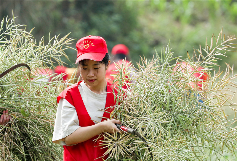 四川新闻网广安5月15日讯(李周宁 邱海鹰 文/图)小满将至,正是农村抢收抢栽关键时节,为不误农时,四川省广安华蓥市的青年志愿者组成“双抢”突击队,奔忙田间为劳弱和缺劳农户抢收油菜、小麦和抢栽秧苗,助力农民粮增产钱增收,展现新时期新青年的风采。