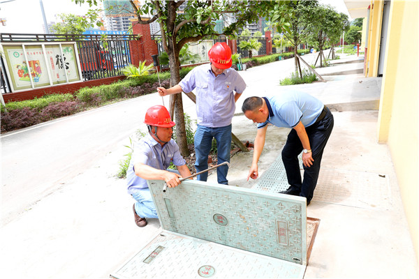 四川新闻网广安6月9日讯( 廖小兵 文/图)“我们要根据学校提供的供水管网图,先沿着校内供水管网分布情况及具体位置走一圈,才能得知管道实际走向,然后进行逐一排查......”6月5日,广安爱众水务事业部党委副书记、纪委书记、工会主席杨建波与抢维修人员一同来到广安中学实验学校,协助该校排查用水量大、水损居高不下,以及管网是否存在漏水情况。原来,在近日的“走基层、解难题、抓落实”活动开展中,广安爱众水务事业部得知该校三期工程区域存在管网漏水,在原施工方解决无果的情况下,爱众水务事业部庚即安排抢维修人员及时赶到现场进行排查处理。