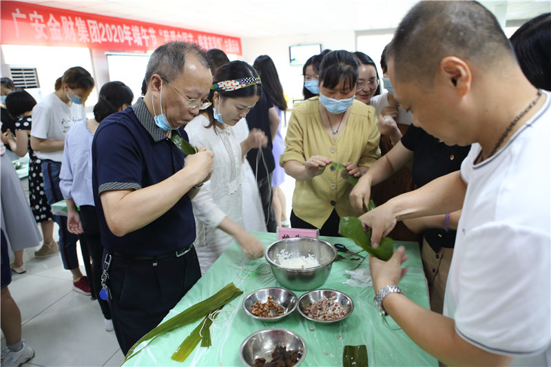 四川新闻网广安6月24日讯(曹弘扬 王鑫鑫 文/图)为进一步引导公司全体职工了解和感受中华民族传统节日文化,更好地继承和弘扬中华民族优秀传统美德, 6月24日下午,广安金财集团开展端午节“我爱中国节·粽寄家国情”主题活动。广安金财集团党委班子在家成员蒋德澍、杨远鹏、冉启平、江玲、高欣、唐家文出席活动,广安金财集团全体职工参加活动。