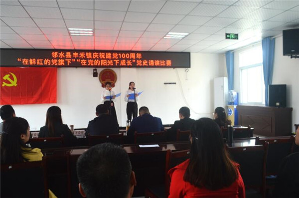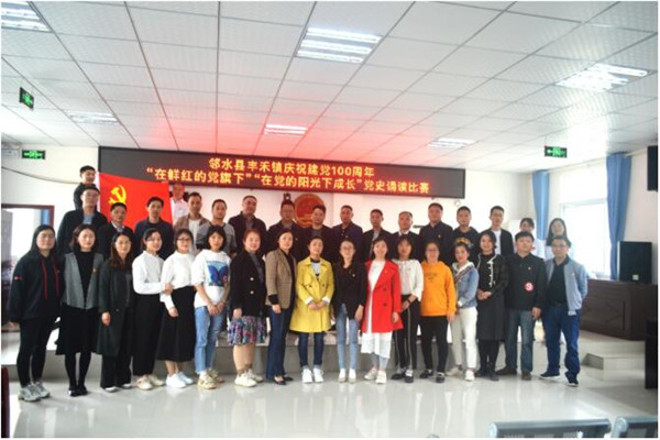 四川新闻网消息(熊建军 文/图)邻水县丰禾镇以纪念建党100周年为核心,以党史学习教育为重点,为进一步增强党组织的凝聚力和向心力,发挥党员的模范带头作用,激励全体党员、广大群众奋发有为,4月23日上午,在镇政府便民服务中心三楼会议室隆重举行了“在鲜红的党旗下”、“在党的阳光下成长”诵读比赛活动。全镇19名党员代表参加了诵读比赛活动,政府全体政府干部职工、村(社区)书记支部共 150余人观看了这场比赛。