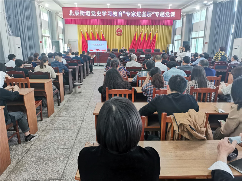 四川新闻网消息(王忠报 文/图)4月29日下午,广安市广安区北辰街道举行党史学习教育“专家进基层”专题党课活动,邀请广安市委党史研究室主任陈吉生讲专题党课。机关干部职工、各社区常职干部、各党支部书记、两新组织和党员代表100余人参加活动。