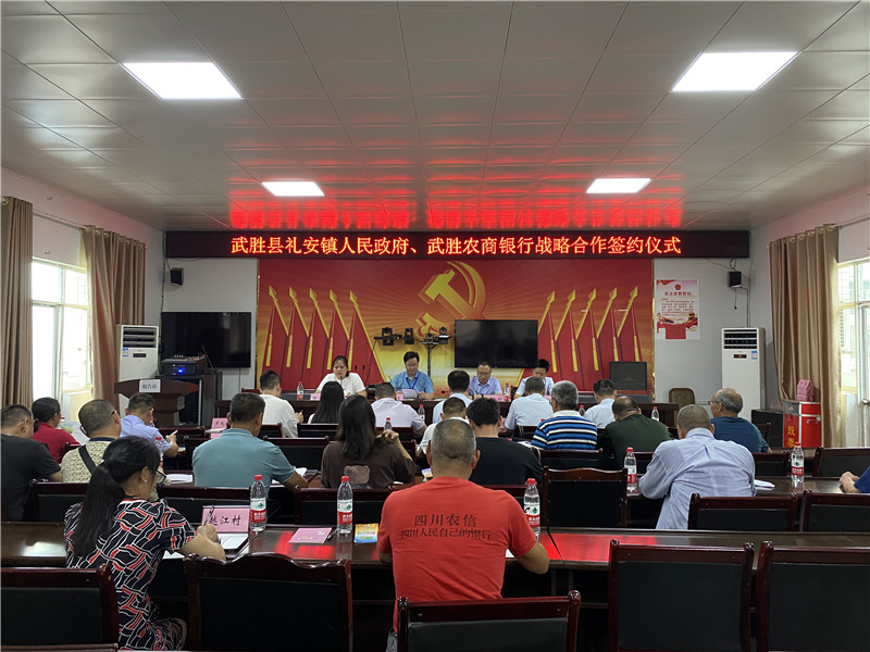 四川新闻网消息6月16日下午,武胜农商银行行长黄钉一行3人赴礼安镇签订战略合作协议。礼安镇全体在家领导班子和在编干部职工,各村(社区)全体常职干部和武胜农商银行领导和列席嘉宾等50余人参加签约仪式,仪式由分管金融的党委委员李希主持。