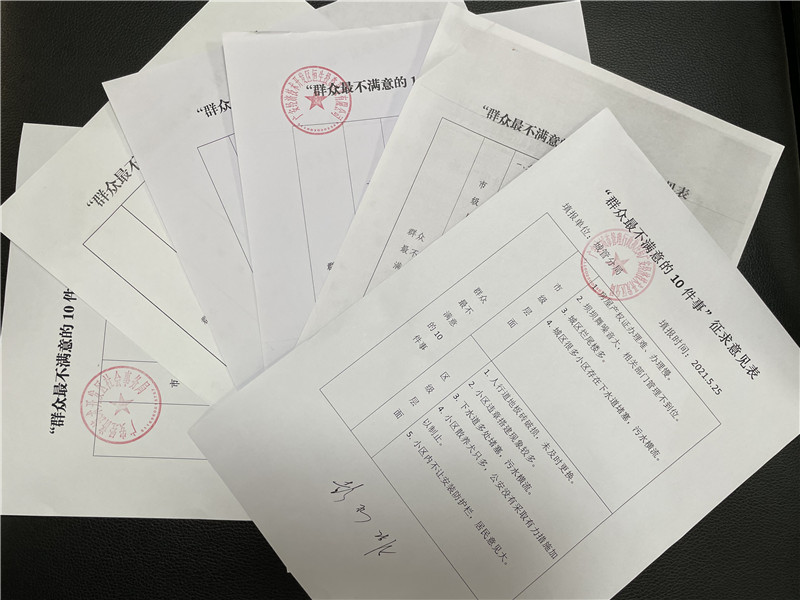 四川新闻网消息 “老乡,你们村上出行方便不?你对政府工作有什么意见吗?你最不满意的事情是什么?” “大爷,你们小区居民对我们的工作有什么意见建议?有什么事情是最希望政府能帮助你们解决的?” “王总,你们企业入驻园区以来,部门在办事服务上有哪些方面做得不好,让你们感觉不满意的?” 为扎实开展“我为群众办实事”实践活动,纵深推进“人民阅卷•广安行动”,广安经开区主动作为,走基层、下企业、入村头,倾听民生诉求。以村(社区)为单位,利用院坝会、村社宣传栏、“村村响”等载体积极宣传,深入基层问计于民、问需于民。通过经开区官网、“广安经开廉播”微信公众号、“一村一微”、工作QQ群、微信群等发布了《关于开展广安经开区2021年度集中整治“群众最不满意的10件事”征集意见建议的公告》;利用微信公众号、开通热线电话、设立电子邮箱和征求意见箱等方式向辖区群众广泛征集问题;向全区干部职工发出《关于征集“群众最不满意的10件事”的函》,收集干部职工在包联工作中、联系服务企业和群众中了解到的群众最不满意的问题。同时,结合接待群众信访、“1+N”包联、“面对面”接访、“村头(街头)问政坝坝会”、政风行风测评等工作中收集的意见建议,整理汇总为“群众最不满意的10件事”。  | | 图为:经开区纪工委通过发放征求意见表的方式向全区各级各部门收集“群众最不满意的10件事”。 |
