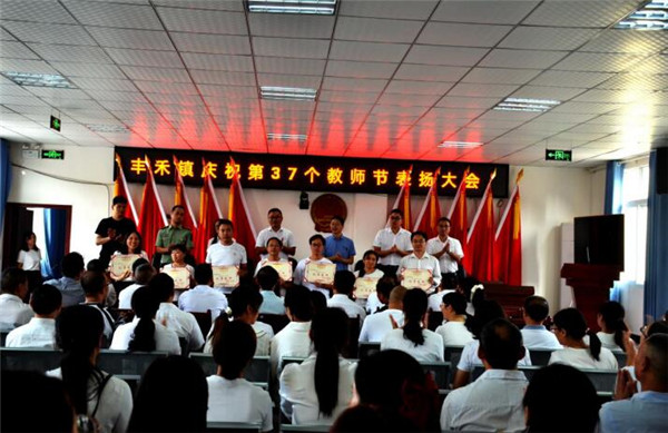 庆祝大会上丰禾镇党委、政府对丰禾镇初级中学张文军等10名优秀教育工作者、丰禾镇中心小学魏开琼等20名优秀班主任、丰禾中学周志勇等82名优秀教师;重庆市邻水商会、邻水县第二人民医院、邻水县公安局交通警察大队六中队、纵宇建设集团有限公司等4个尊师重教先进单位进行了表彰。