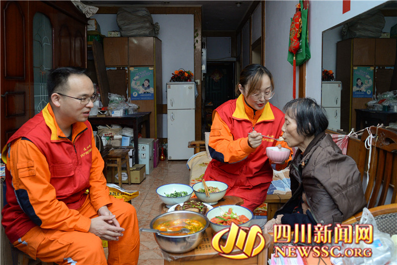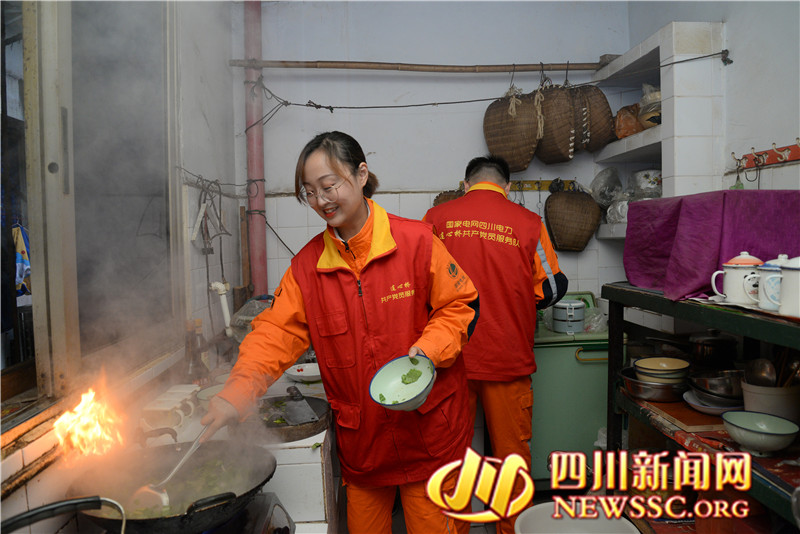 四川新闻网消息(姜静 记者 游伍琼 文/图)秋风轻拂,夕阳余晖中,一位白发老人若有所思地望着几个“红马甲”在家里忙碌,厨房飘出阵阵菜香,空气中弥漫着祥和的气氛。