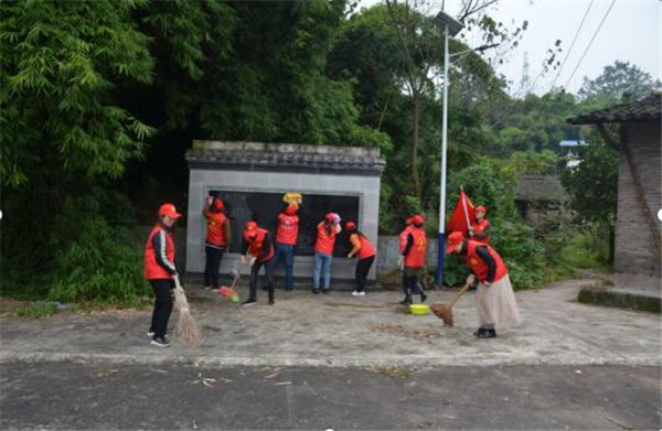 四川新闻网消息10月28日上午,邻水县丰禾镇团委、妇联组织青年志愿者,到丰禾镇复兴村三组正兴塆参加了“八路军重庆办事处地下撤退站遗址纪念碑”瞻仰和义务清扫活动。