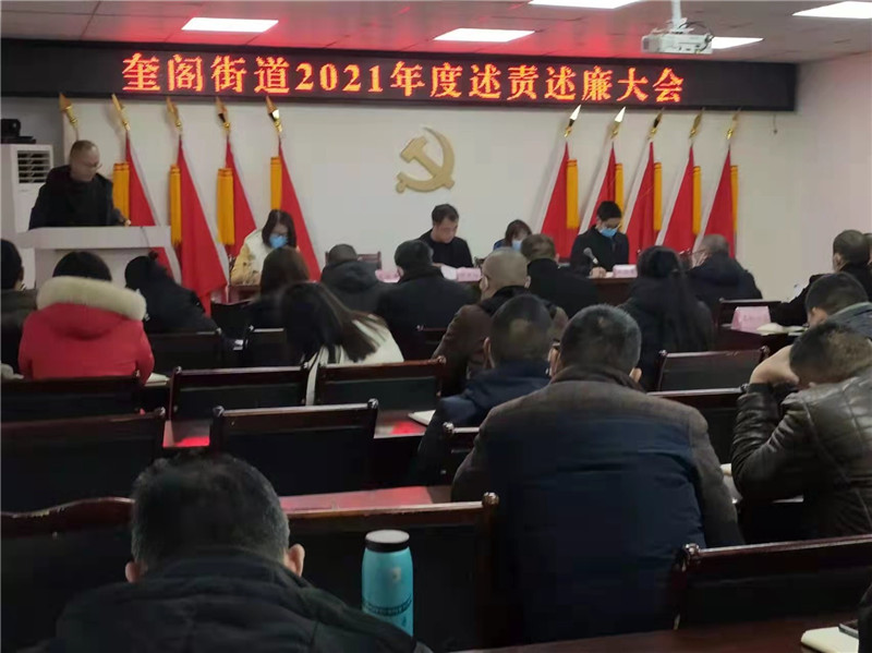 | | 图为奎阁街道召开2021年度述责述廉大会。 |