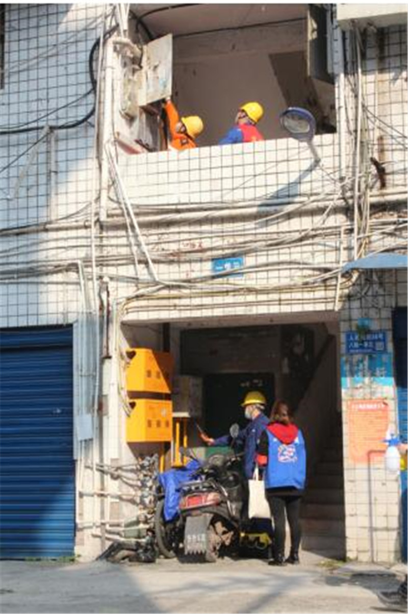 在社区网格员的带领下,志愿者还上门为有需要的客户义务检查室内线路,现场检查安全用电情况,更换老旧开关和线路。“真的是太感谢你们了,为我们修好了插座,还查出了燃气安全隐患,不然平时我一个人在家可真危险了。”家住梧桐花园小区的王奶奶不停地向武胜公司和燃气公司的志愿者道谢。
