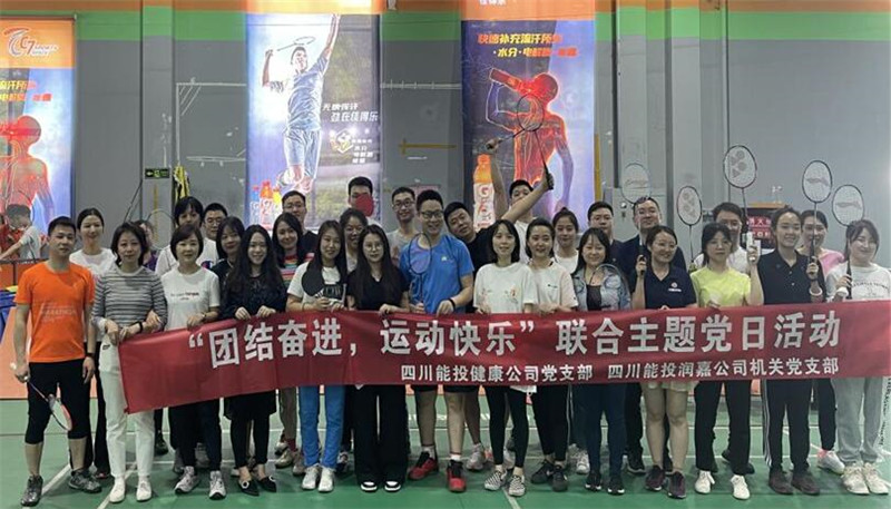 四川新闻网消息 为进一步加强兄弟公司的交流,提升主题党日活动质量,丰富主题党日活动内涵,强化党员凝聚力和战斗力,更好的发挥党员先锋模范作用,4月21日,四川能投健康公司党支部与四川能投润嘉公司机关党支部联合开展“团结奋进 运动快乐”主题党日活动。 活动在《团结就是力量》的歌声中拉开序幕。本次主题党日活动以羽毛球、乒乓球联谊赛的方式进行。乒乓球赛场上,白色的小球拉出漂亮的弧线,牵起运动员之前的战友情谊。