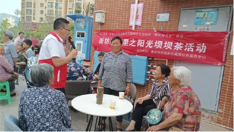 玉堂社区九期安置房地处比较偏僻,交通和娱乐设施目前都还在开发和修建中,由于村改社区大多居民的思想还待转变,很多还会因为一些小事发生争执,玉堂社区结合实际,由社区主导,社工主体运营,社区居民参与,开展了一场以坝坝茶形式居民之间如何相处以及纠纷调解服务活动。 在四川坝坝茶,是老百姓的一项休闲娱乐方式,坝坝茶,顾名思义,坐在坝子里喝茶。场地不需要修饰讲究泡上一杯清茶,像朋友一样聊聊家常谈谈心事,拉近居民的距离,活动邀请到了国家二级心理咨询师--甘伟现场讲解邻里之间如何友好的相处,甘老师讲到:远亲不如近邻,邻里之间的感情就如冬日里的一缕阳光温暖大家,对有需要心里帮助的老人小孩可以提供免费的帮助。