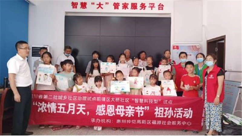 四川新闻网消息 为切实推动全区“四川省第二批城乡社区治理试点项目”进一步顺利开展,2022年5月8日,由广安市前锋区民政局指导、前锋区龙塘街道大桥社区主办、惠州仲恺高新区福源社会服务中心承办的“浓情五月天,感恩母亲节”祖孙活动在大桥社区二楼会议室开展,本次活动有20位居民参加。 为弘扬中华民族的传统美德,在全社会树立“歌颂母爱,弘扬美德”的良好风尚,龙塘街道大桥社区组织儿童及家长一起参加祖孙现场DIY绘画。
