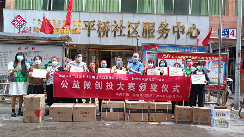 微创投比赛设立了奖项:一等奖一名,奖励一台音响;二等奖两名,分别奖励一台微波炉;三等奖三名,分别奖励一台落地扇;优秀奖两名,分别奖励一台风扇;平桥社区书记为获奖代表们颁发了荣誉证书。(供稿:惠州仲恺高新区福源社会服务中心) |