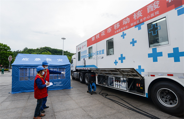 5月9日23时,邻水县疫情防控办紧急通知邻水有限公司,2台方舱核酸检测车将于凌晨到达邻水,需及时送电。 23时10分,邻水有限公司负责人迅速带领运检、营销等专业工作人员紧急赶往方舱核酸检测车计划停的靠黄桷树公园,经过现场勘查,制定了以一进三出等多种方式的低压配电柜配合敷设120平方毫米电缆为核酸检测车供电的方案。并紧急开通绿色通道,组织员工在30分钟内完成计划申报、施工车辆调派、物资材料准备等前期准备工作,全力保障方舱车“落地即送电”。 23时30分,邻水有限公司12名党员突击队队员到达现场施工。低压电缆敷设、相序校正、电缆头制作,大家分工协作、有条不紊,整个现场忙而有序。经过2个多小时连续作业,敷设低压电缆260米、配电箱2个,一切准备工作完成。 10日凌晨1时,成都驰援邻水的2台方舱车陆续到达,在协助方舱车检查完内部线路和供电设施后,1时25分,2台方舱核酸检测车顺利通电。 “没想到我们方舱车深夜赶到邻水县,在短短的半个小时内就为我们接通的电源,你们真不容易……”,在邻水县黄桷树公园方舱车停靠点,驰援邻水的成都第三人民医院工作说道。 10晚22时,邻水县疫情防控办紧急通知4台驰援邻水新增方舱车将于凌晨3时到达邻水,4时30分,4台方舱车顺利通电。 12日凌晨1时48分,邻水县疫情防控办紧急通知3台方舱车将转移工作地点,同时再新增3台核酸检测方舱车。12日早上6时30分,经过16名党员突击队连夜奋战,方舱车顺利通电。