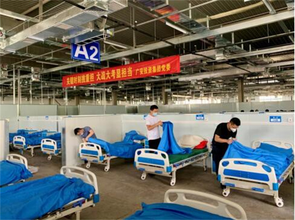 关键时刻挑重担,大战大考显担当。疫情当前,集团迅速号召党员、志愿者组成的疫情防控党员先锋队、疫情防控青年突击队共计100余人。在集团公司党委的严密部署下,克服天气变化、出行受控等诸多困难,主动请缨、不惧风险、逆行而上,勇敢奔赴疫情防控第一线,积极投入到物资配送、床位安装、环境消杀、防控措施宣传等志愿服务中,让党旗飘扬在一线,用行动践行初心使命,切实做到疫情防控战场在哪里,广大党员就战斗在哪里,以高度的政治责任心和使命感积极投身疫情防控工作中。 华蓥山下,渠江河畔。广投人始终在抗疫一线、群众需要一线、经济社会发展一线。广安投资集团将坚守抗疫初心使命,积极承担社会责任,为构筑全市疫情防控坚实防线贡献广投力量。(供稿:广安投资集团 袁浪)