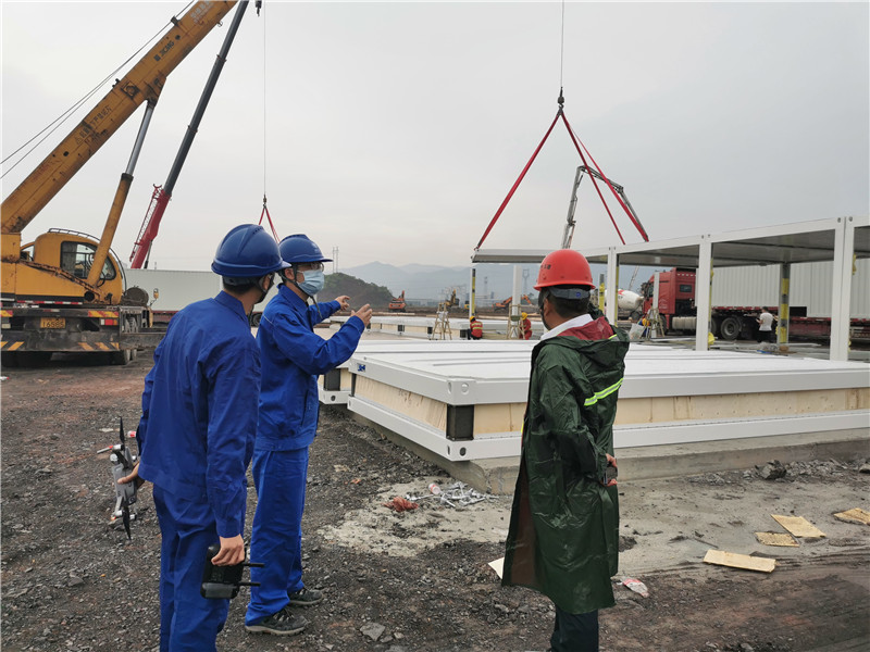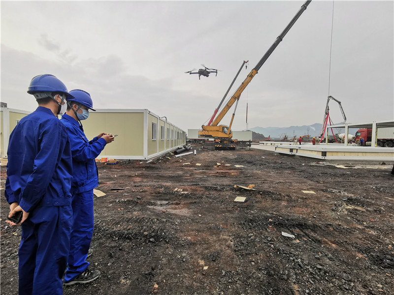 | | 5月17日,国网广安供电公司输电运检人员向广安前锋区方舱医院建设施工人员交代安全注意事项。 |