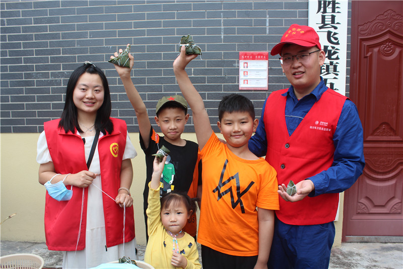 四川新闻网消息 6月1日,在“六一”国际儿童节、中国传统节日“端午节”到来之际,共青团武胜县委和国网武胜县供电公司联合组织青年志愿者们走进武胜县飞龙镇五家岩村童伴之家,开展“浓情迎端午·欢乐庆六一”活动,为留守学生送安全、送温暖、送祝福。 “湿手的时候千万不要触碰电源插座!”“自来水,清又清,洗洗小手讲卫生。”国网武胜县供电公司青年志愿者杨柳向该村留守学生们讲到,她结合生活实际,为学生们讲解了家庭用电常识、户外防触电注意事项以及疫情防控小知识,提醒他们注意用电安全和戴好口罩、勤洗手,遇到困难及时向村委会反映。 活动中,孩子们在青年志愿者的带领下一同动手包粽子。“大家包的粽子样式各异,我们教没有学会的小朋友,或者在旁边搭把手。”西部计划志愿者王倩一边说一边用熟练的手法做起了示范。孩子们也积极尝试,争相展示自己的劳动成果。活动现场粽叶飘香,在欢声笑语中,孩子们切身感受到了传统节日的浓厚氛围。 “何奶奶,给您,端午节吃粽子了。”大家把爱再次传递,将包好的粽子送到村上高龄老人的手上,并送上节日祝福。老人们喜笑颜开。 青年志愿者们还为孩子们精心准备了20余套书籍、水彩笔、尺子等学习用品的“走心”礼物。大家将礼物递到孩子们手中,仔细关心和询问了他们最近的生活和学习情况,叮嘱他们按时完成网上在线课程,做积极向上的优秀青少年。 “书籍和学习能够点亮未来之光,希望孩子们在社会各界的关心下,在我们的童伴之家快乐成长,今后成为建设祖国的人才。”广安市武胜县的“童伴妈妈”蒲娟说。 五家岩村的留守学生在青年志愿者的陪伴下度过了一次难忘的节日,参与活动的孩子们纷纷表示这个六一儿童节他们过很有意义、很快乐。(供稿:国网武胜县供电公司 张南川)