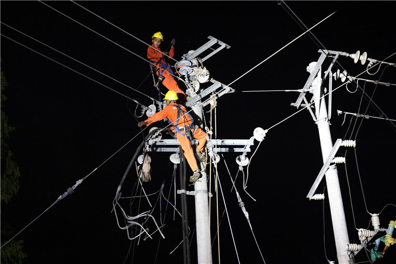 四川新闻网消息 8月18日凌晨,国网武胜县供电公司40余名员工正在武胜县沿口镇檬梓村抢建10kV联络线路,用汗水为千家万户送去“清凉”。 “今天我们的主要工作任务是将10kV乐双线改接到10kV武石线上......大家对工作内容是否清楚”这是该抢建工程班前会的一幕,工作负责人告知工作危险点、安全措施布置、技术交底等内容。就在30分钟前,国网武胜县供电公司还对施工方案进行最后的研究确定。 由于工程点位较多且分组同时进行,加之夜间野外作业视线相对较低,国网武胜县供电公司提前做好事故预案,安全及运维管理人员现场督导作业人员规范使用安全施工器具,统筹抓好安全与工程进度。为解决抢建物资不足的问题,国网武胜县供电公司全力协调,调运备品备件,同时临时借用城南站、方坪站等地电力物资,集中力量筹措金具、导线、瓷瓶等设备。 挖基坑、立电杆、组装金具、展放导线.....一项项工作有条不紊的进行着。“1,2,3,起呦”在电力工人们的号子声引导下,杆上作业人员协助送线,下面3个工人为一组一同拉线,导线顺着电杆方向不断上升,逐渐与地面齐平。尽管是夜里,室外温度仍然超过了36度,汗水还是浸湿了每一个人的衣衫,汗水不断从面部往下淌。 经过连续15个小时的高强度抢建,8月19日11时03分,国网武胜县供电公司220kV武胜变电站10kV武石线与35kV乐善变电站10kV乐双线联络线路施工完毕并投入使用。组立电杆9基,导线11档共963米。 “乐善站受近期持续高温酷暑影响,处于超供电能力运行,为解决当前供电瓶颈,新建联络线路,投运后,最大能提供5000千瓦的负荷,既能极大限度缓急当前乐善、双星片区用电紧张的形势,也能使两条线路互为备供,进一步提升供电可靠性。”该工程现场工作负责人唐开浪说。(供稿:国网武胜县供电公司 张南川)