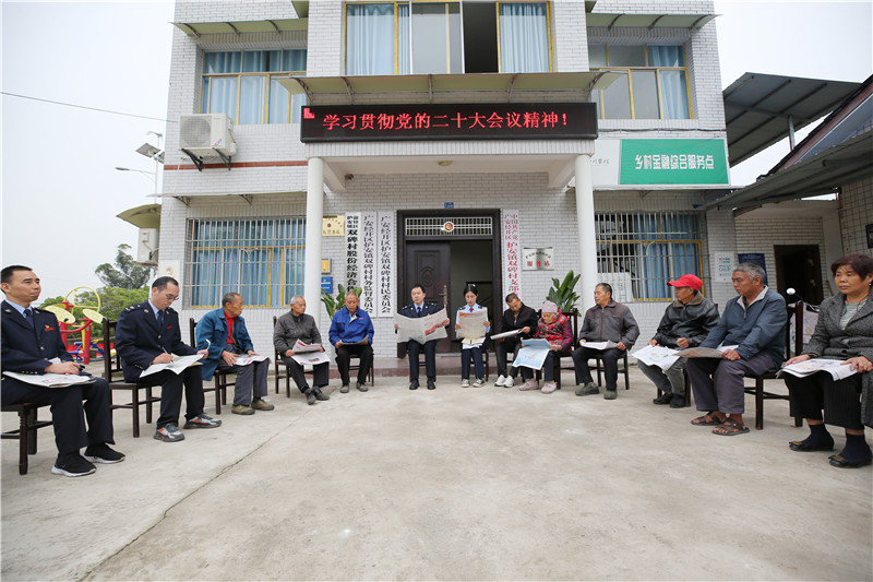 该局驻广安市前锋区护安镇双碑村第一书记孙永敏结合乡村振兴工作开展以来双碑村的新发展、新变化,与村民们一起,重温、学习、分析二十大报告中关于巩固拓展脱贫攻坚成果、全面推进乡村振兴、加快建设农业强国的深刻内涵,同时,为村民们细致讲解报告金句内容,为村民答疑解惑,用“百姓土话”将党的二十大最新理论娓娓道来,引起了村民的共鸣。