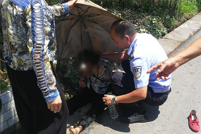 辅警唐涛在值班民警的带领下一边火速赶往现场,一边拨打120急救车。到达现场,唐涛迅速上前,把老人从水沟里扶起来,却发现老人的确神志有些不清,疑似中暑。