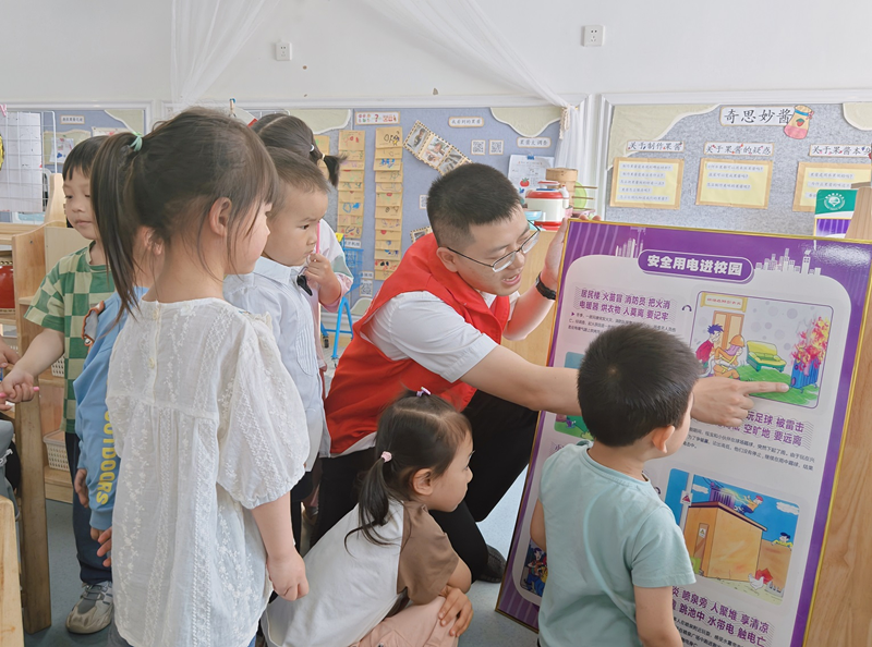 宣传人员通过开展“安全用电小课堂”、发放漫画图解手册以及开展电力知识问答游戏等形式,向幼儿园的小朋友们讲解生活中安全用电、节约用电的相关知识。