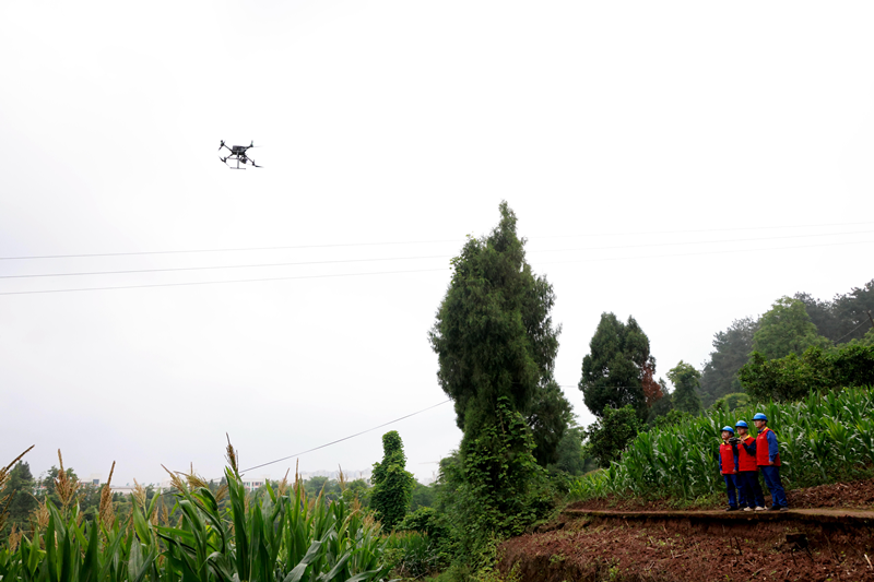 6月5日,身穿红色马甲的国网武胜县供电公司连心桥共产党员服务队队员毛朝轩、夏振航再次来到沿口镇唐家大山使用激光雷达无人机对10千伏武工线穿越林区线路通道进行巡视。该条线路主要供龙女湖片区的商业、居民生产生活用电,同时也是今年高考考点武胜龙女湖中学和武胜县第28届端午节龙舟赛的主电源。巡视结束后,毛朝轩等人还对龙女湖中学的用电线路进行仔细的检查,再次确定应急发电车是否成功接入。