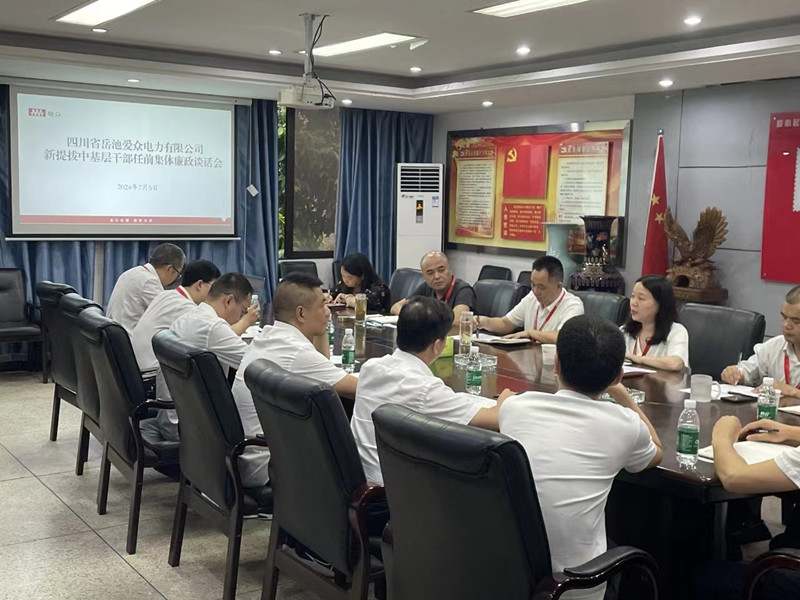 四川新闻网消息为加强干部队伍建设,提升新晋升干部廉洁自律意识,促进干部担当履职。7月5日,岳池爱众电力公司组织新晋升15名中基层管理干部,开展任前集体廉政谈话暨现场警示教育活动。