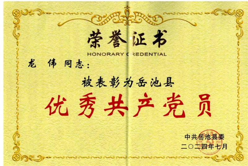 四川新闻网消息 近日,中共岳池县委发布关于表彰全县优秀共产党员、优秀党务工作者和先进基层党组织的决定。四川省岳池特曲酒业有限公司党支部书记,科研中心经理,“岳池曲酒酿造技艺”第六代非遗传承人龙伟同志荣获“岳池县优秀共产党员”称号。