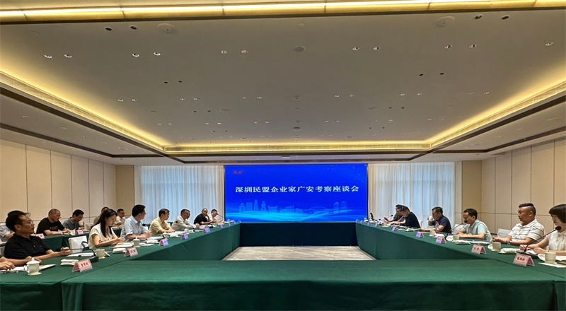 在深圳民盟企业家广安考察座谈会上,考察组一行观看了广安市城市形象宣传片;市经合局副局长赵勇向深圳客人推介了广安投资环境、发展前景和招商政策,市林业局副局长胡涛介绍了广安林业发展现状和相关项目需求;两地参会盟员企业家代表作交流发言,他们纷纷表示,广安面临国家重大战略机遇垂青,具有深厚的发展潜力和一流的投资环境,将在互惠互利的基础上,进一步深化沟通交流,探寻合作契合点,实现共赢新突破。