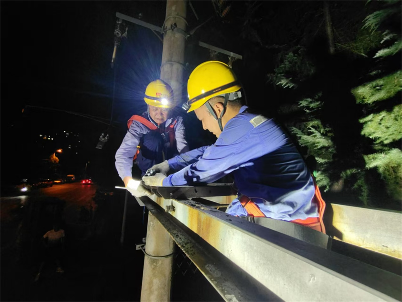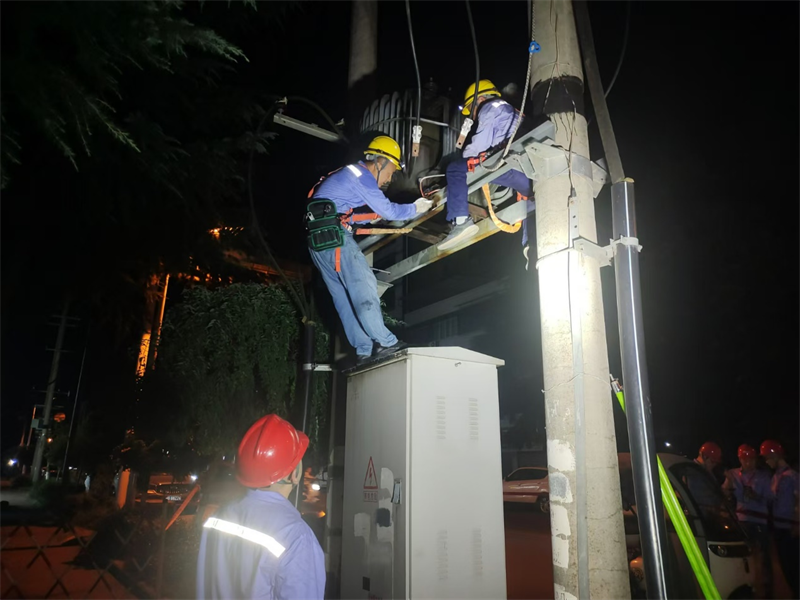 “师傅,这么热的天,你们的身上湿透了,下来喝口水歇一会再干嘛!不然,人遭不住。”在现场围观的居民罗小军说道。“老乡,不用,干完了你们用上电了,我们心里才踏实。”台架上正在作业的黄绍元回答道。“以前呐,大热天的,我们几乎在空调房里待着,没有啥感觉,今天看到你们在这么热的晚上,为了大家的清凉,还在不停干活,谢谢你们了,电力的师傅们!”另一围观的居民唐成说道。“谢谢你们的理解,这是我们应该做的,守护你们的清凉是我们的职责所在。”在场的田军答道。