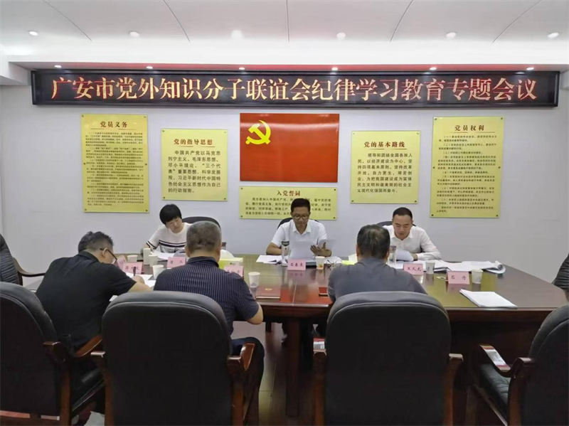 四川新闻网消息 7月30日,广安市知联会召开纪律学习教育专题会议。市知联会会长、市政协副主席石春来主持会议并讲话。会上,市委统战部副部长王久龙讲授纪律学习教育专题党课。
