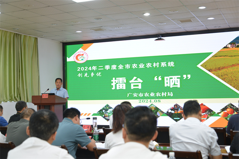 四川新闻网消息(记者 游伍琼)8月2日上午,2024年二季度广安市农业农村系统创先争优擂台“ 晒 ”暨半年工作总结部署会召开。广安市农业农村局领导班子成员、机关各科室(站所、中心)主要负责人,各县(市、区)、经开区农业农村部门主要负责人等参加会议。