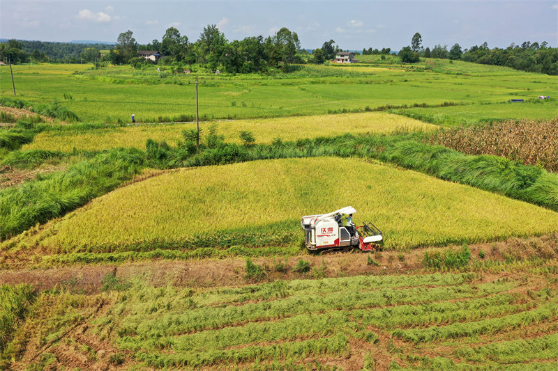 据广安市广安区农业农村局相关负责人介绍,今年广安区栽种优质水稻39.5万亩,部分已经成熟开始机械化收割。目前该区已经调集农机300余台,力争全区水稻机收率达91%以上。