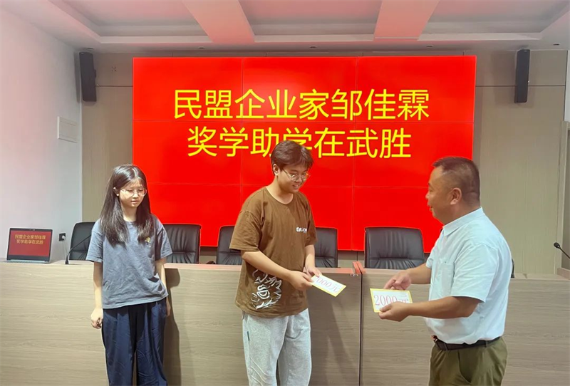 活动现场,邹佳霖向2名家庭条件特殊、品学兼优的“准”大学生捐赠助学金共4000元,希望他们好好学习,树立远大理想,做好人生规划,在未来有能力时将爱心传递出去,感恩回报社会。“欢迎大家利用假期时间到我的企业来实习,保持联系,在生活方面遇到困难可以找我,我将尽己所能地帮助大家。”邹佳霖亲切地说。