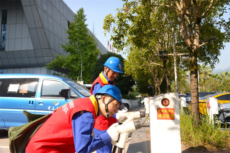 “经巡视检查,1号充电桩输出电流稳定,充电桩电源信号灯指示正常,充电电流正常,设备无异常现象。”8月20日上午10时许,国家电网四川电力(广安邻水二队)连心桥共产党员服务队队员正对邻水县新世纪客运中心充电桩设备开展巡视检查工作。