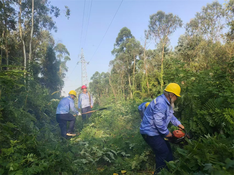 8月22日,岳池爱众电力公司运检中心组织人员走进石垭镇云峰村林区,对35kV石罗线31号—38号塔沿线开展清障和线路巡检工作,确保电力线路的安全运行,避免发生森林火灾。