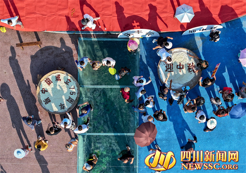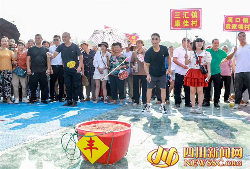 | 9月14日,四川省广安华蓥市溪口镇和重庆市合川区三汇镇的群众,欢聚在袁家坝村参加趣味活动,在开心中迎接中秋节、中国农民丰收节和国庆节。 |