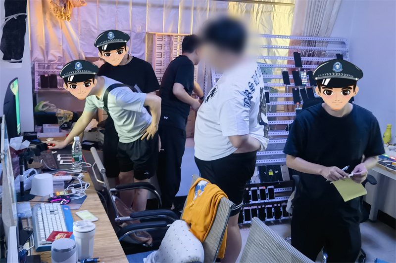 经过连续多日的艰苦侦查和蹲守,9月10日,办案民警在岳池城区某小区内将犯罪嫌疑人王某某、蔡某某抓获,现场扣押涉案手机200台、电脑6台。