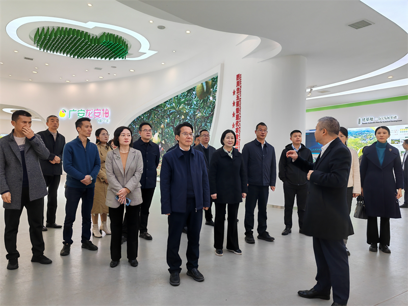调研组一行来到方坪大道改造提质项目现场,详细了解项目规划设计、投资、建设进度、预期效益等情况。在广安区龙安柚现代农业园区,参观龙安柚深加工车间、主题展示厅,听取相关情况介绍,并就龙安柚产品研发、市场拓展等方面进行了深入交流。随后,调研组来到协兴镇牌坊村,调研了解建川博物馆聚落及牌坊新村建设情况。