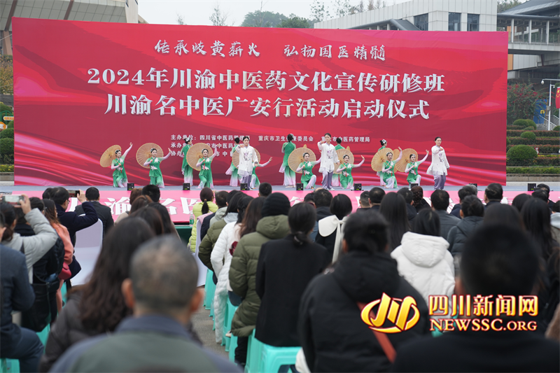 11月26日,为推动成渝地区双城经济圈建设国家战略走深走实,以文化引领助力国家中医药综合改革示范区和中医药强省建设,由四川省中医药管理局、重庆市卫健委、重庆市中医药管理局主办,广安市中医药管理局承办,广安市中医医院协办的“川渝中医药文化宣传研修班”暨“川渝名中医广安行活动”启动仪式在广安市民广场举行,活动主题为“传承岐黄薪火 弘扬国医精髓”。