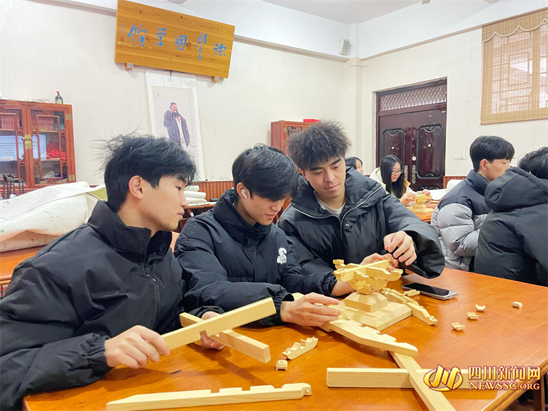 讲座后,广安门市博物馆研学导师为资源环境专业40名大二学生学带来广安文庙建筑“斗拱”模型拼接社教活动,有效展示广安古建筑高超技艺,传承弘扬中国优秀传统文化根脉。