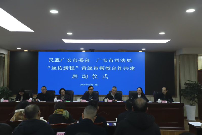 为贯彻落实民盟中央、司法部关于开展“黄丝带帮教”工作的有关要求,推动广安市“黄丝带帮教”工作持续深入,12月13日,广安市“丝佑新程”黄丝带帮教合作共建启动仪式在市司法局三楼会议室举行。民盟广安市委会主委、市人大常委会副主任贺宗飞,广安市司法局党组书记、局长李廷远,市司法局党组成员、政治部主任宋隆治,民盟广安市委会副主委殷云、黄雪兰、罗明轩,秘书长王莹莹出席活动。市司法局党组成员、副局长赵小涛主持仪式。