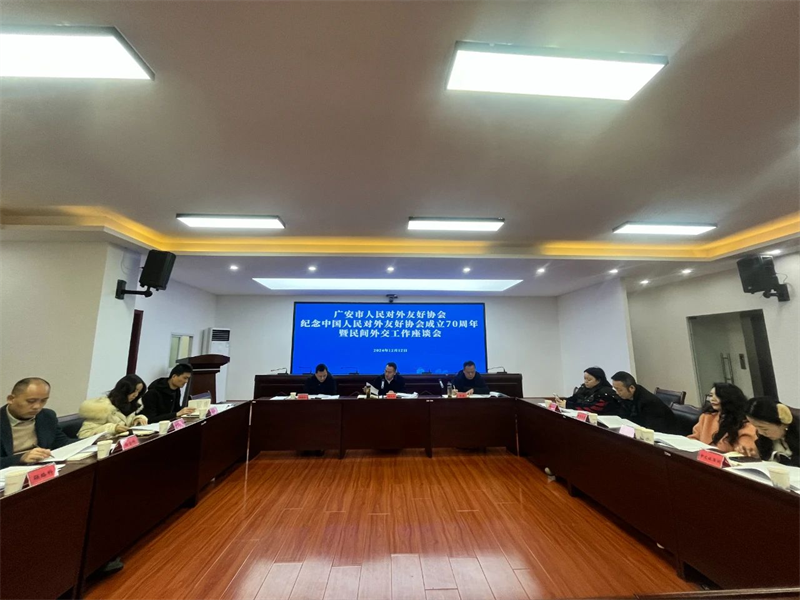 12月12日,广安市友协召开纪念中国人民对外友好协会成立70周年暨民间外交工作座谈会。广安市友协领导,市教育体育局、市文化广电旅游局、市商务局、市经济合作局、市贸促会、市交旅集团有关负责同志及市友协机关科室负责人参会。