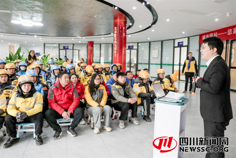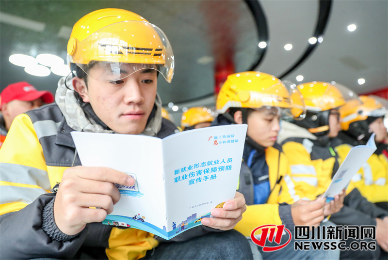 | 12月20日,四川省广安市美团、饿了么、京东等新业态从业人员,在听取社保规划师宣讲社保政策、从业安全和工伤预防等知识。 |