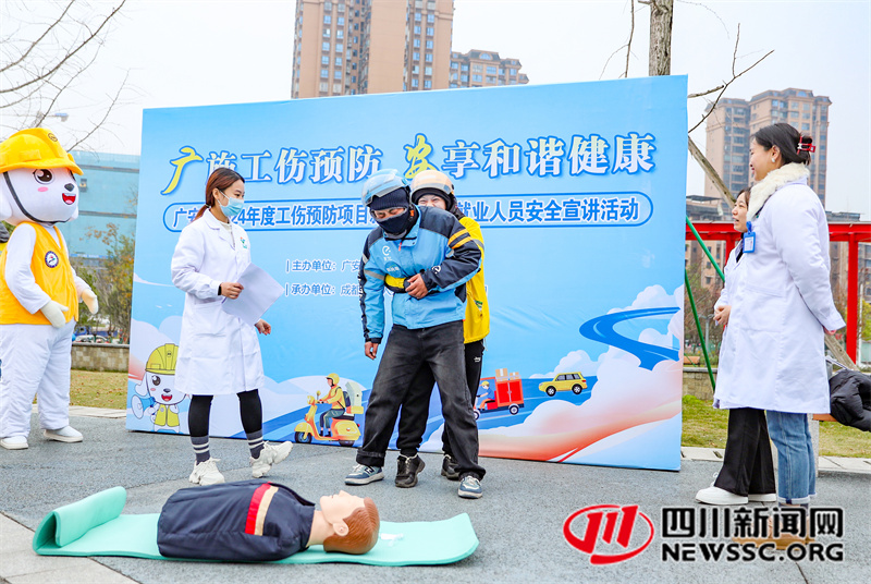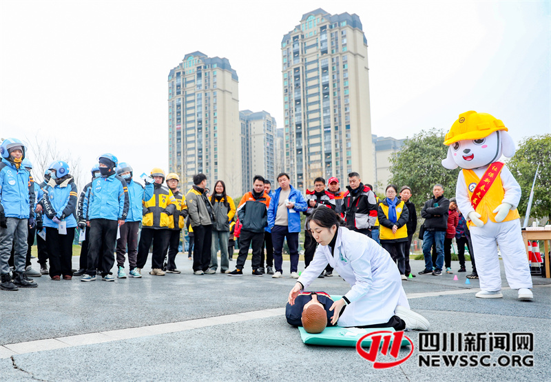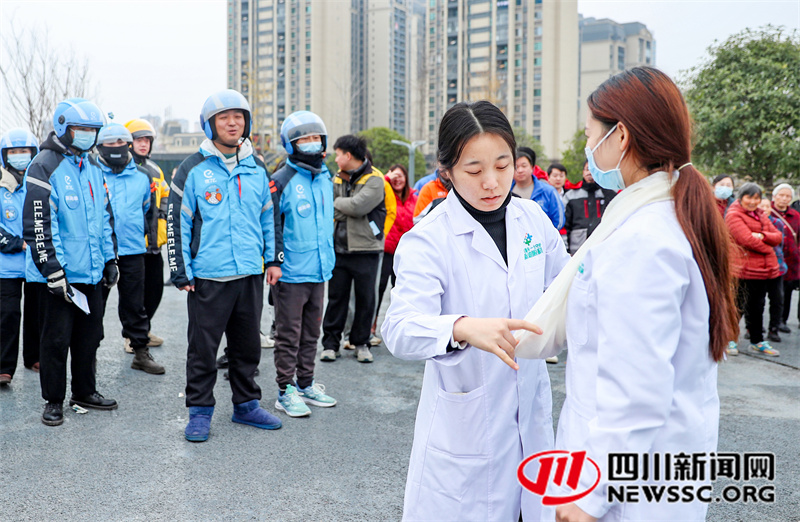 | 12月20日,在四川省广安市社会保险局开展的“社保规划师新春走基层”系列主题活动中,医疗志愿者在给美团、饿了么、京东等新业态从业人员,演示心肺复苏等知识。 |
