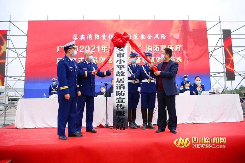 期间,市消防救援支队支队长杨林为小平故居旅游区消防宣传志愿者服务站授牌;参会人员观看国家综合性消防救援队伍三周年主题图片展、消防装备展。