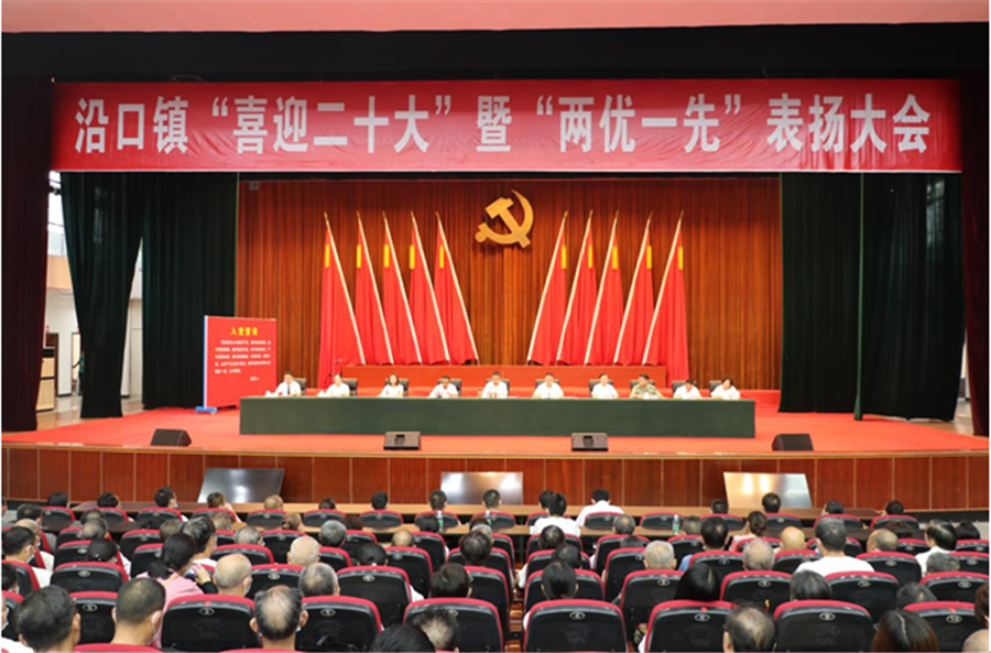 四川新闻网消息 6月28日上午,广安市武胜县沿口镇“喜迎二十大”暨“两优一先”表扬大会在武胜县会展中心召开。会议由沿口镇党委书记华力同志主持,县委常委、政法委书记刘勇同志、政法委机关支部党员、沿口镇机关支部党员、村社区党员代表参加了本次会议。 大会在雄壮的国歌声中拉开帷幕。面对鲜红的党旗,在镇党委副书记、组织委员姚青青的带领下,全体党员举起右拳,重温入党誓词。