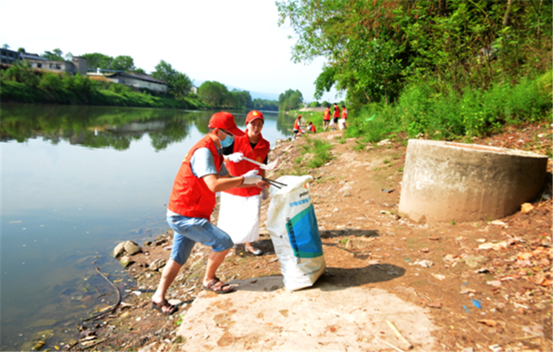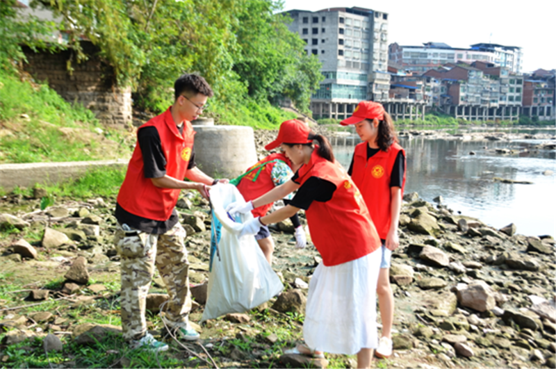 四川新闻网消息 7月28日上午,四川省广安市邻水县丰禾镇团委组织11名志愿者到辖区大洪河旁开展净滩行动,带头宣传环保意识。