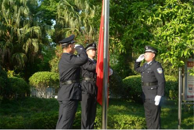 上午8时30分,升旗仪式正式开始,伴随着指挥员“迎国旗,向国旗行注目礼!”的口令,升旗手、护旗手迎着朝阳,迈着坚定而整齐的步伐入场,将国旗送至升旗台前。庄严神圣的国歌响起,国旗在晨曦中冉冉升起。全体民警、职工、辅警警容严整,用敬礼向伟大的祖国致以最崇高的敬意。